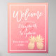 Välkomstskylt för bröllopsfest - Elegant falsk guldskinn Ananas Paret på rosa rosor blomster Damaskus papper bakgrund.