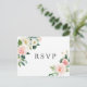 Elegant bröllop RSVP-kort med målade akvarellblommor i rosa, vit och grön bladverk. För mer avancerad anpassning av denna design, vänligen klicka på "Anpassa"-knappen. Matchande artiklar finns också tillgängliga.