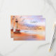 Elegant bröllopsinbjudan eller svarsbrev med en målning av en fyr på stranden med måsar vid solnedgången. Detta kort matchar flera bröllopsinbjudningar.
