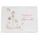 Bröllpsduschdesign med brudklänning med bukett blommor Grattis! till den vackra blivande bruden