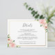 Designad för att samordna med vår Bloomsbury bröllopssamling, har detta eleganta bröllopsgästinformation-/informationskort en vacker akvarell rosafärgad blommig arrangemang och handskriven bokstavsstil. Personifiera det med dina detaljer enkelt och snabbt, tryck bara på knappen anpassa för att ytterligare ändra och formatera stilen och placeringen av texten. (c) The Happy Cat Studio