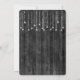 Hängande lysande ljusslinga på rustikt mörkgrått laduträ för bröllopsinbjudan.