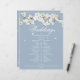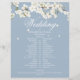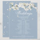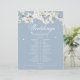 Denna vackra blombröllop vita blomning bröllopsschema tidslinje kan anpassas med din bröllopsinformation i chic typografi på en dammig blå bakgrund. Designad av Thisisnotme