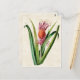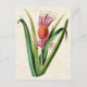 Postkort med en digitalt rengjord och förbättrad vintagebild av en bromeliadväxt med en rosa blomma på en pergamentbakgrund. Illustrerad av Etienne Denisse för Flore d'Amerique, publicerad i Paris, 1843.