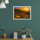 Den solnedgång som sågs från bron till Fontisterni i Donninis riktning i Toskana backe utanför Florens, Italien. Från en ursprunglig oljemålning av Kaliforniens konstnär, Daniel Berkeland.