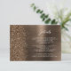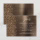 Detta eleganta moderna bröllopsdetaljer bifogade kort har en bakgrundsbild i brons borstat metall med grov diamantfalsk glitter. Anpassa den vita texten, med titeln "Detaljer" i stilfull handskrift och den återstående texten i sans serif-teckensnitt. Baksidan har en matchande design i brons borstat metall och falsk glitter.