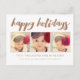 Den ursnygga fauxen brons mettalic omkullkastar typografi på bekläda av denna moderna vykort för märkes- vit som du kan upload in i med 3 av dina egna nyfödd bebis-, familj- eller barnfotoporträtt.