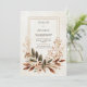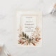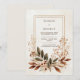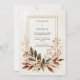 Skapa en varm och sofistikerad ton för din speciella dag med denna jordnära botaniska komposition. Designen presenterar ett frodigt arrangemang av rika brons- och djupt olivgröna blad, accentuerat av ömtåliga krämfärgade blomsterdetaljer och fina bärstjälkar som skapar en naturlig, organisk känsla. En glänsande guldram i dubbla linjer centrerar din text mot en mjuk, pergamentstrukturerad bakgrund för en exklusiv, vintagefinish. Denna bröllopsinbjudan är ett vackert val för en höstceremoni, en rustik utomhusfirande eller en varmt tonad boho-fest. Den säkerställer att dina evenemangsuppgifter ramas in med en känsla av tidlös elegans och naturlig grace från det ögon