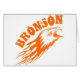 Bronson Eagles t-shirts, mugg, tote bags, klistermärken, knappar och många fler anpassaden som har en orange Eagles huvuddesign med lågor och ord Bronson som är skriven i ett orange grunge-typsnitt.
