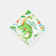 Den här födelsedagsdinosauriedesignen har en lång brontosaurus i nacke i grönt och orange omgiven av blad och remsor. Alla illustrationer är handmålade i vattenfärgskrita. Den här designen har plats för två namn för ett kombinerat födelsedagsfirande eller så kan du redigera den för ett enda namn. Se hela matchningssamlingen.