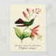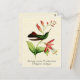 Postkort med en vintage naturhistorik illustrerad av Antoine-Germain Bebetjänt. En skarp grönt hummingbird med rik brunfjädrar från svan på en tropisk bitterträ-shrub med pulserande korallblommor av rosa, på en ljusguld gult med struktur bakgrund. Digitalt rengjorda och förbättrade, samtidigt som vintagens egenskaper bibehålls. Det finns gemensamma och vetenskapliga namn i dekorativt typsnitt.