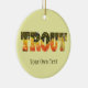 En vacker hängande helgdag prydnad för den kille eller tjej som KÄRLEK ska fiska eller som kärlek, eller som kärlek trout! Utformningen har ord "TROUT" som är tryckt i det vackra färg och skyddar huden på Brook Trout, salvelinus fontinalis. Den här fiskkonsten kommer från en ursprunglig vattenfärgsmålning av Trout Whiskers. Underbar för hem, kontor, hytt, logi, butik eller butik eller någon annanstans talar folk öring. Gör en unik gåva eller present till din favoritfiskare eller fiskare eller ichyolog eller fiskbeundrare. Samma fiskdesign finns också tillgänglig på hundratals andra fiskeartiklar vid TroutWhiskers - klistermärken, knappar och magneter; mugg, lådor och hattar; poster, dekaler och prydnadsföremål; artiklar för kök, hus, hytt och lott; caseser och sleever för telefoner, t-shirts, sweatshirts, hoar och andra kläder och kläder ... och partier och mycket mer!
