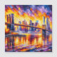 Brooklyn-bron, en arkitekturmarvel som färdigställdes 1883, symboliserade industriell innovation och stadselegans. Dess svepande bågar och stålkablar förbinder Brooklyn med Manhattan, förkroppsligar tidlös glamor och historisk betydelse.Använda akryliska stil med gyllene och lavendertoner på denna ikoniska marvel.