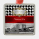 Brooklyn Bridge NYC Black White Houndstooth Red Ribbon jul Ornament A black and white Öster River skyline view New York City's iconic Brooklyn Bridge and Municipal Byggnads with a boat förbi by. Den har också en svart och vit houndstooth mönster, ett rött band och en vit etikett i ditt val av en silver- eller guld-utseende. Observera att detta är en grafisk design och inte innehåller några egentliga tyger, metall eller prägling.