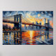 Brooklyn Bridge med sunset och skyline New York City. Utskrift av stor genererad oljemålning. En högupplöst bild garanterar vass kvalitet på alla storleka.