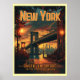 Upptäck hur vacker Brooklyn-bron är med den här fängslande bilden av reseaffischen. Beklaga att den ikoniska bron flydde i soluppgång i färg mot bakgrund av New York City skyline. Perfekt för hemmabruk eller som gåva till New York City älskare.
