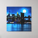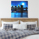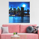 Canvas i en imponerande, digital målning av Brooklyn-bron, och staden utanför, under fullt, med månljus reflekterat över vatten