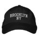 Minimalist BROOKLYN NY Vit broderade på svart bomullshatt. Vit broderier är anpassade till andra färg-alternativ genom att klicka på knappen "Redigera design" verktyg. Du kan också välja färg på huvudobjektssidan.