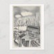 Det här vykortet är en reproduktion av en pennskiss/ritning av Columbia Heights, Brooklyn, med Manhattan i bakgrunden. (konstnär Minnetta Good)