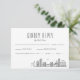 En matchande OSA kort för Brooklyn Modern Deco Skyline Wedding-inbjudan. Denna OSA har ett särskilt avsnitt för val av måltid och antalet gäster. En mjuk kolbakgrund sitter på baksidan.