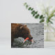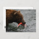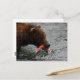 Med detta vykort fångas ett koniskt ögonblick av vilda djur i Alaska: en storartad brunbjörn som avsiktligt fiskar lax i Brooks Falls. björnens råmakt och naturliga instinkt, som ställs mot den pristina Alaska vildmarken, skapar en verkligt oförglömlig scen. Det är ett idealiskt kort för djurentusiaster, älskare eller någon som drömmer om Alaska äventyr.