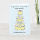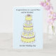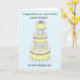 En flerskiktig vit och citronfärgad bröllopstårta avbildad mot en pastell blå bakgrund. Orden "Grattis till en speciell systerdotter och hennes man på deras bröllopsdag" visas tillsammans med bilden.