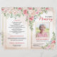Rosa ros begravningsprogram trycks på högkvalitativ papper. Hela innehåll i programdesignen (text och bilder) kan vara personlig som motsvarar dina behov. Du kan lägga till, redigera eller ta bort innehåll med onlinens redigerare innan du beställer. Minnesprogrammet är tryckt på framsidan och tillbaka på brev-storlek papper.