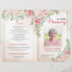Rosa ros begravningsprogram trycks på högkvalitativ papper. Hela innehåll i programdesignen (text och bilder) kan vara personlig som motsvarar dina behov. Du kan lägga till, redigera eller ta bort innehåll med onlinens redigerare innan du beställer. Minnesprogrammet är tryckt på framsidan och tillbaka på brev-storlek papper.