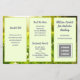 Budgetbroschyr för småföretag som anpassar sig på båda sidor och viker in i tredjedelar. Den naturliga bakgrunden är gräs med grönt och solsken. All text är mörkens lila. På var och en av dessa 5 x8-pappra finns tre avsnitt med textmallar. Lägg även till en logotyp, QR-kod och/eller ett foto i de medföljande utrymmena. Om du inte vill använda en eller flera bildhållare tar du bort den genom att gå till "Redigera i designläge verktyg" som du kan hitta genom att bläddra till grund i personaliseringsområdet. I designområdet väljer du bilden genom att klicka på den och slåast sedan symbolen "sopor kan" för den bilden. Om du ändrar storleka på pappra kan du ändra designen så att den inte får rätt plats. Kontakta mig om du vill ha hjälp.