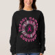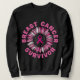 Stor rosa solros med rosa band i mitten och text som cirklar "Bröstcancer överlevande".