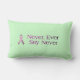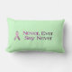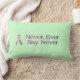 Den stora dekorativ kudde med bröstcancercitationstecken- och rosabandet, som läser, "tror". I ljust - grönt, (som läker färg)---läser aldrig någonsin något att säga aldrig.