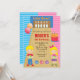 Blåpars inbjudan med söt pojke och söt flicka i blå och rosa bakgrund.