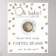 Vattenfärgade kaffebönor och kopp av kaffe och bönor mönster. Kaffe, brinnande babydusch Kaffet, den där babyduschen med. Text med kaffe ring och med kaffebönor och kopp av kaffe.