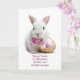 Happy Easter to your brother and his husband, featuring a cute white bunny holding a basket of colorful eggs with customizable text.