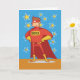 Önska din bror en Lycklig Far dag med detta roligt kort. Superhjälten har en röd dräkt och står stolt framför stjärnornas bakgrund. Tack till Vecteezy för superhjälten.
