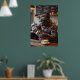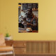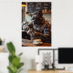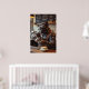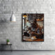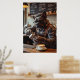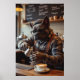 Den här kraftfulla Fransken Bulldog poster att förvandla muren till en kaffescen för superskoj. Valpen, som är klädd i en grönt och en vit flanskjorta med suspensioner och glasögon, är hård på arbetet med mjölk och häller ett sent mästerverk. Hans kryp-ögon-fokus visar att han är djupt i malningen. "Bark Roast" och andra punktdrycker fyller på menyn på kritbordet. Underbar för alla som behöver ett uppsving för humor med sin koffeinfixering.