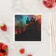 Foggy-landskap med ett hemsökt hus som dekorerats för Halloween, ett fullt och stort träd i bakgrunden med svampar, gravgård och en zombie och spöke som väntar på att få hälsa dig.