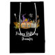 En presentväska med en söt bild av ett hemsökt pumphus med en stor häxhatt på översidan och spöken och fladdermöss som flyger runt.