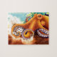 En hawaiansk bläckfisk (he'e) brottas en tigerporslinssnäcka in i dess håla. Konst av Tammy Yee, www.tammyyee.com.