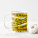 varningsbandgrunge mugg med textpolislinjebandbrottsplatsbanddetektivband mordgula övre gränspolisenpolislinje kaffemuggkorsa inte muggbrandkår mugg