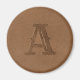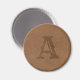Den här magnetdesignen har ett brunt faux-läder struktur med en monogrammad början i mitten så att du kan anpassa dig.