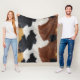 Fleece blanket design featuring an Image of brown, black, and white cowhide texture print.