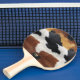 Pink pong paddle design featuring an Image of brown, black, and white cowhide texture print.