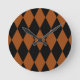 Brown Black Harlequin Diamonds Checkers Design Rund Klocka