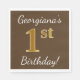 Den här enkla pappra napkin-designen innehåller ett meddelande som "Georgianas första födelsedag!", där "1:a" har ett faux-guld-liknande utseende, på en brun färgad bakgrund. Namn kan anpassas. Den skulle kunna användas i en födelsedagsfest till någon som firar sin första födelsedag. [~Z0000082]