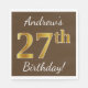 Den här enkla pappra napkin-designen innehåller ett meddelande som "Andrew's 27:e födelsedag!", där "27:e" har ett faux-guld-liknande utseende, på en brun färgad. Namn kan anpassas. Den skulle kunna användas i en födelsedagsfest till någon som firar sin tjugosjunde födelsedag. [~Z0000082]