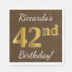 Den här enkla pappra napkin-designen innehåller ett meddelande som "Riccardos 42:a födelsedag!", där "42:a" har ett faux-guld-liknande utseende på en brun färgad. Namn kan vara personlig. Den skulle kunna användas i en födelsedagsfest till någon som firar sin fyrtioandra födelsedag. [~Z0000082]