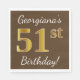 Den här enkla pappra napkin-designen innehåller ett meddelande som "Georgianas 51:a födelsedag!", där "51:a" har ett faux-guld-liknande utseende, på en brun färgad. Namn kan vara personlig. Den skulle kunna användas i en födelsedagsfest till någon som firar sin femtioförsta födelsedag. [~Z0000082]
