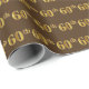 Den här pappra designen har ordnumret 60:e med ett faux-guld-liknande utseende. Den har också en brun bakgrund. Det skulle kunna användas när man slår in en gåva som ges för någons sextioårsdag, eller kanske för ett gift pars sextioårsdag bröllop eller för något annat sextioårsevenemang/tillfälle. [~Z0000024]