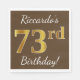 Den här enkla pappra napkin-designen innehåller ett meddelande som "Riccardos 73:e födelsedag!", där "73:e" har ett faux-guld-liknande utseende på en brun färgad. Namn kan anpassas. Den skulle kunna användas i en födelsedagsfest till någon som firar sin sjuttiotredje födelsedag. [~Z0000082]